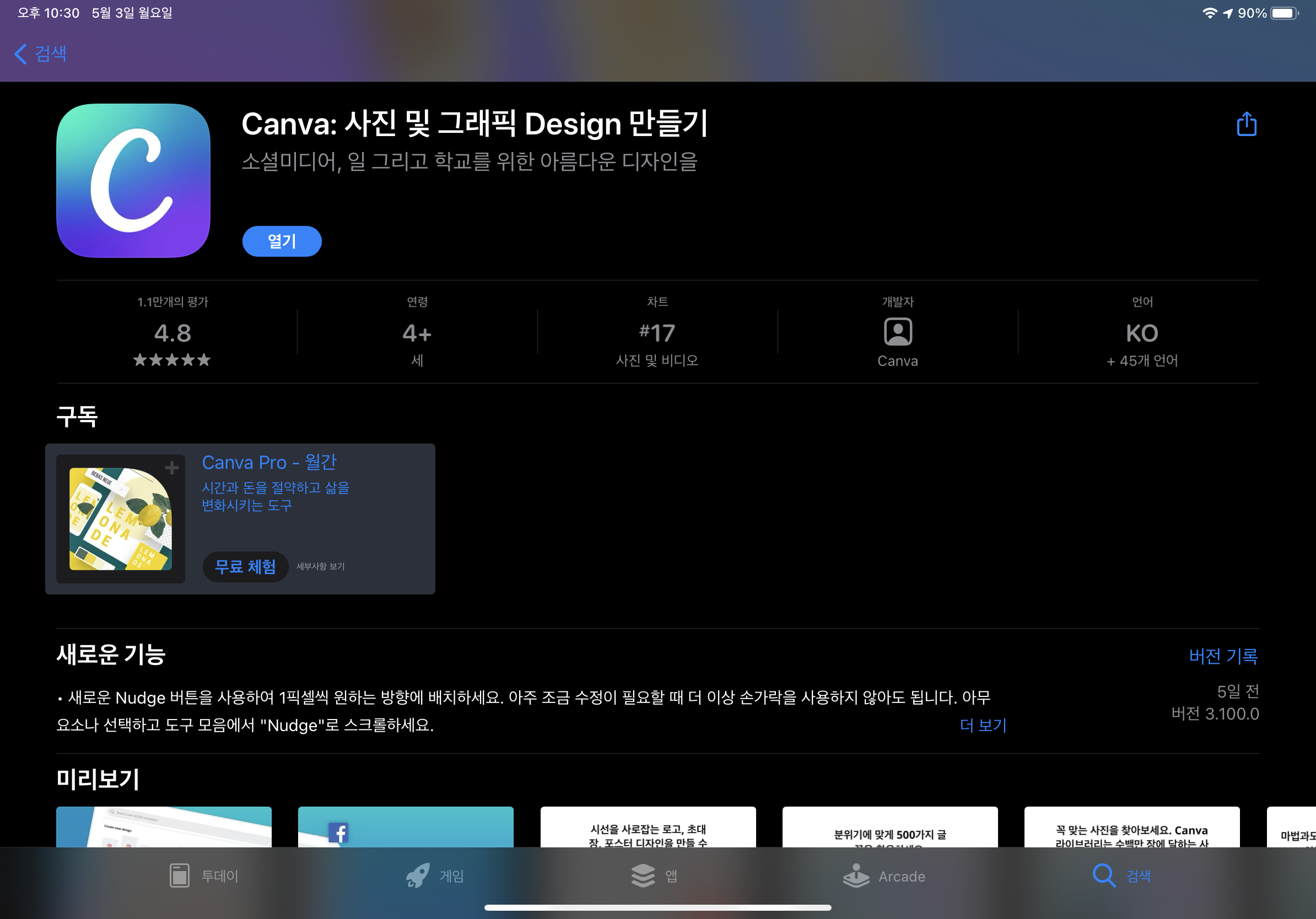 먼저 앱스토어에서 Canva 또는 캔바를 검색해서 앱을 다운로드 받습니다.