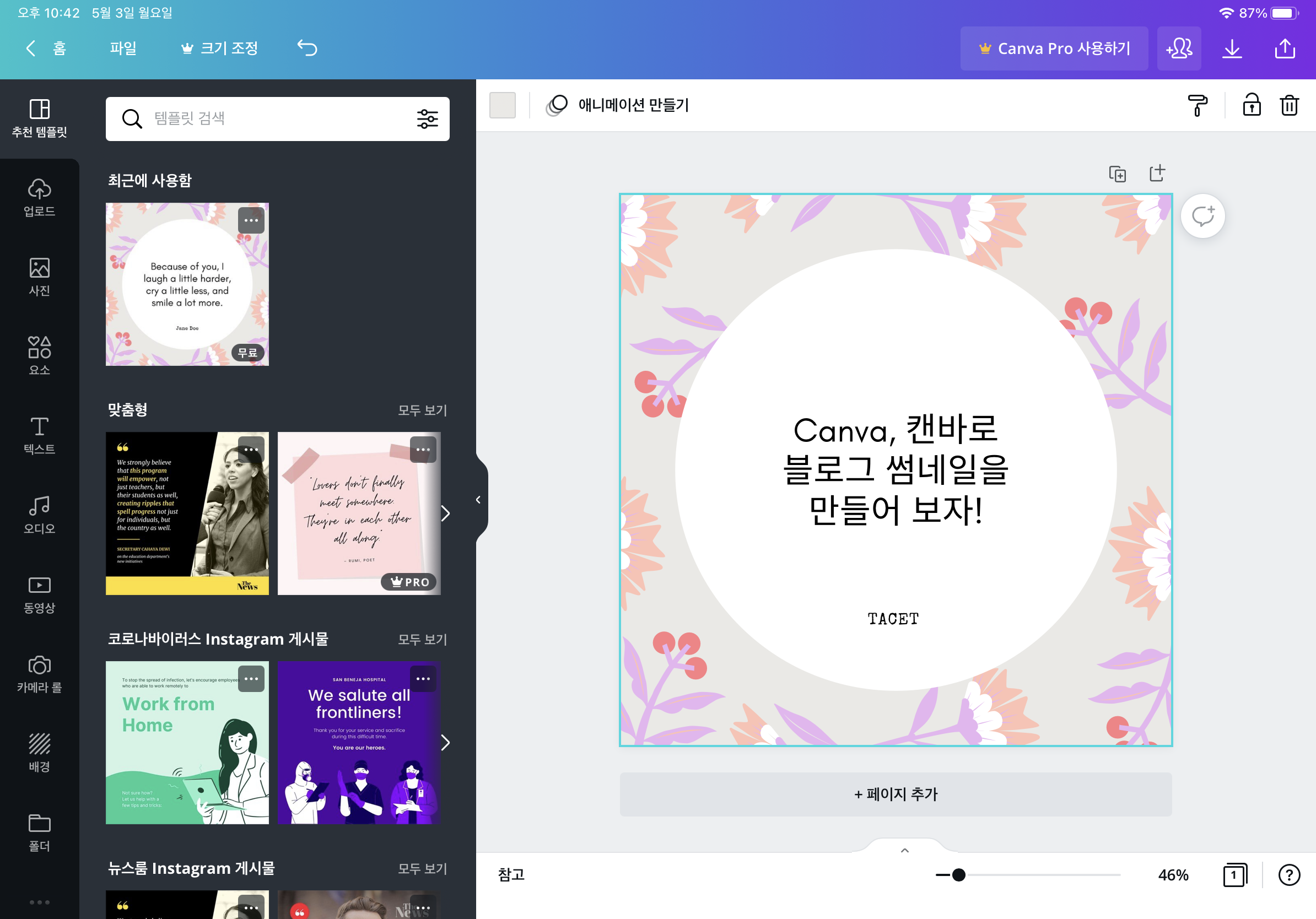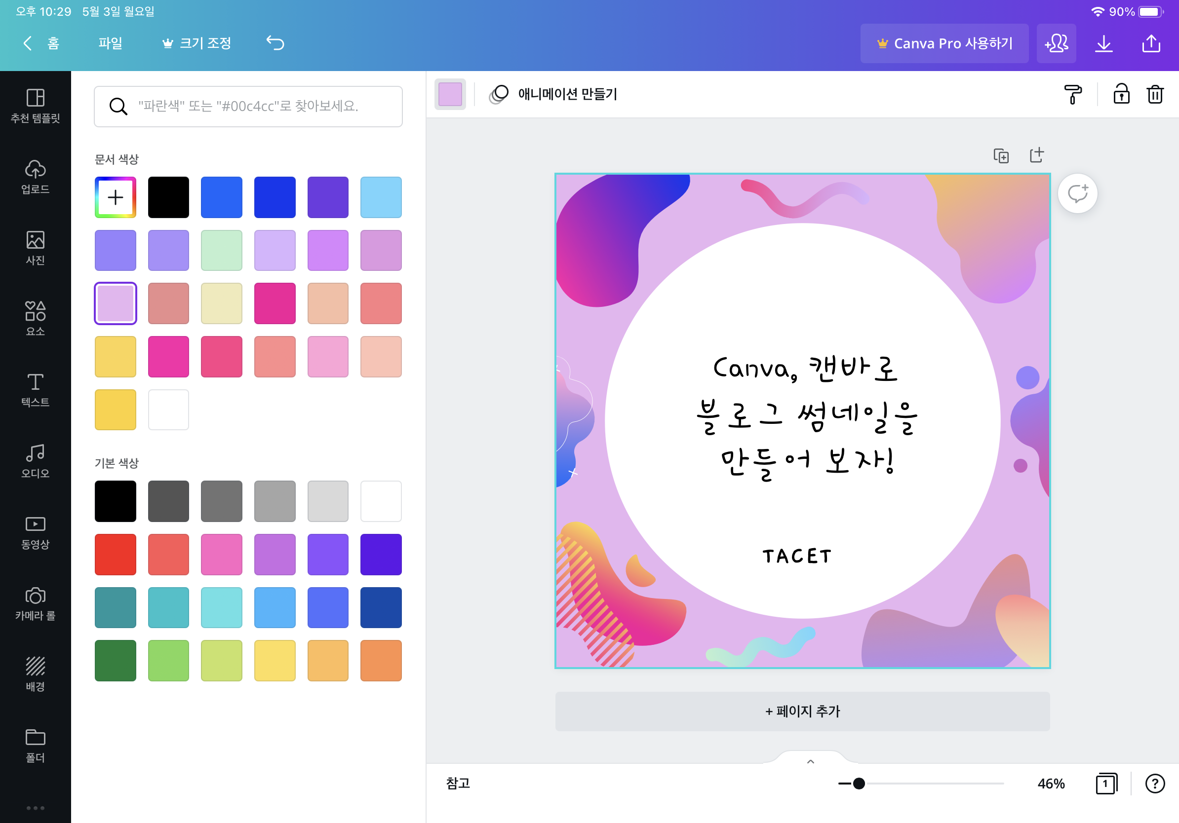 예쁘게 꾸며보는 걸 목표로 캔바를 처음 사용해보았습니다.