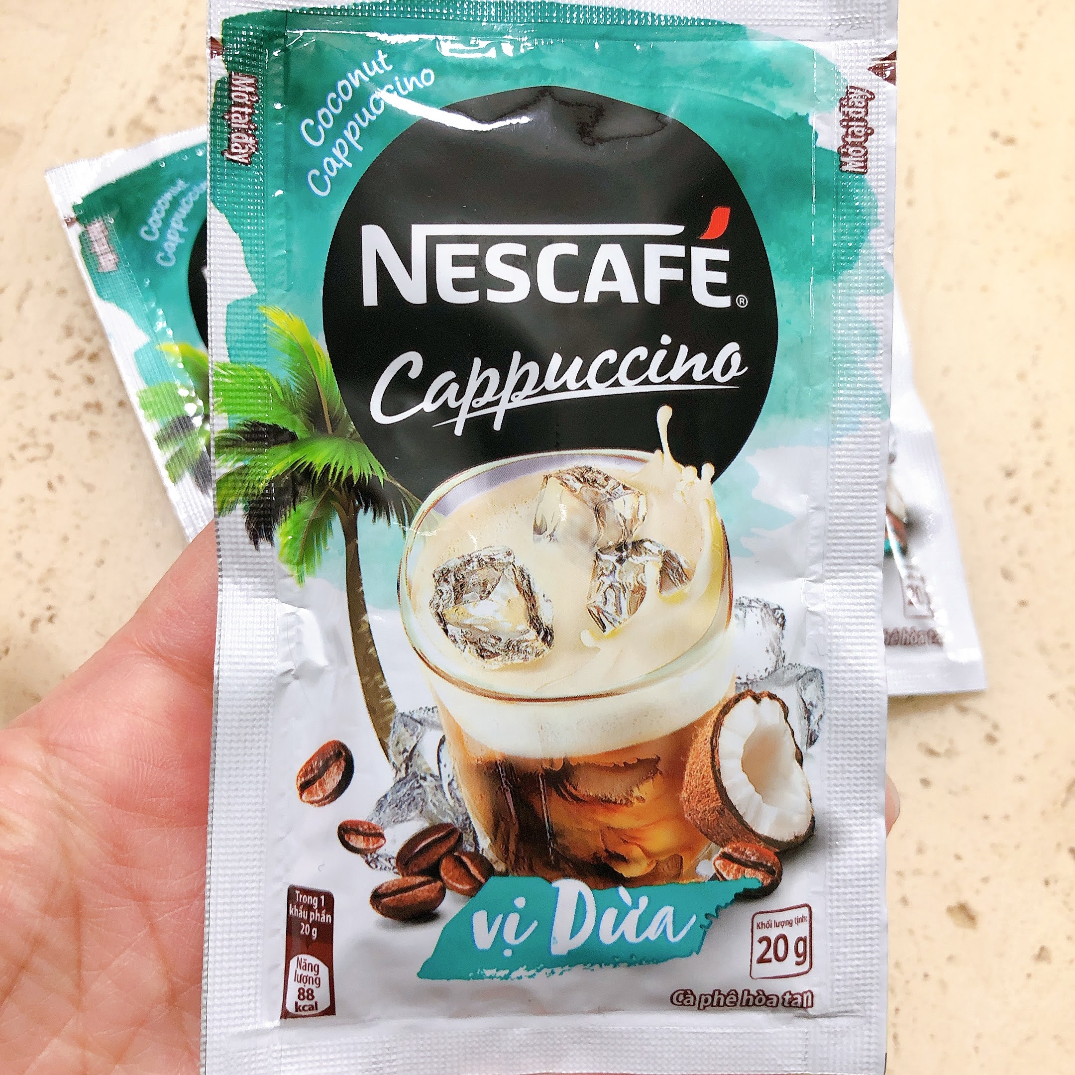 네스카피 코코넛 카푸치노 믹스 세 봉입니다 :-)